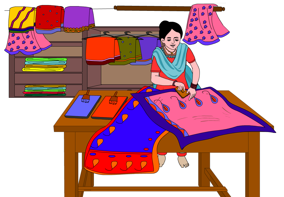 Now Shamima vows to work with women, who are ill-fated like her. She has 43 female members in her organisation working for her. She herself trains the members and then provides them with work. She designs fabrics, makes block-print, brush-paint and hand-embroidered saris. She also makes three-piece dresses for women, and fatuas for men. She sells these products in her shop and supplies them outside.