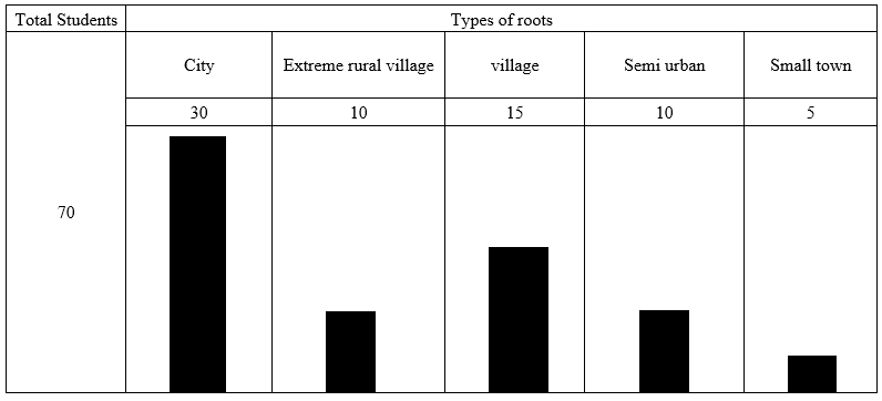There are 70 students in our class. They have come from different roots. A chart or graph is given below after a classroom survey of their roots.