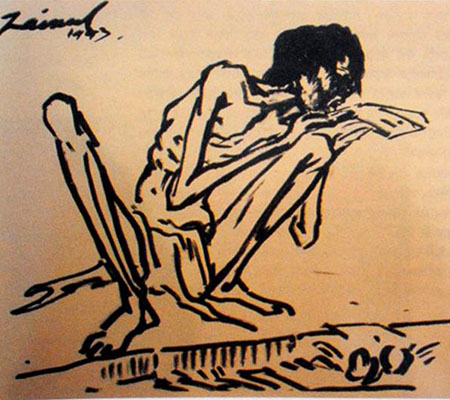 Group A : Picture 1 portrays the famine in 1940. It is a skeleton figure of a man who is about to die of starvation. It is one of the greatest sketches of the artist Zainul Abedin.