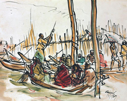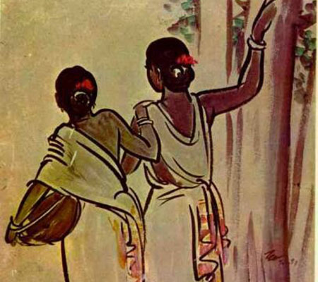 Group B : Picture 2 portrays Shaontal women. It is a sketch of the great artist Zainul Abedin. In the picture two women are two sisters who are going to work.
