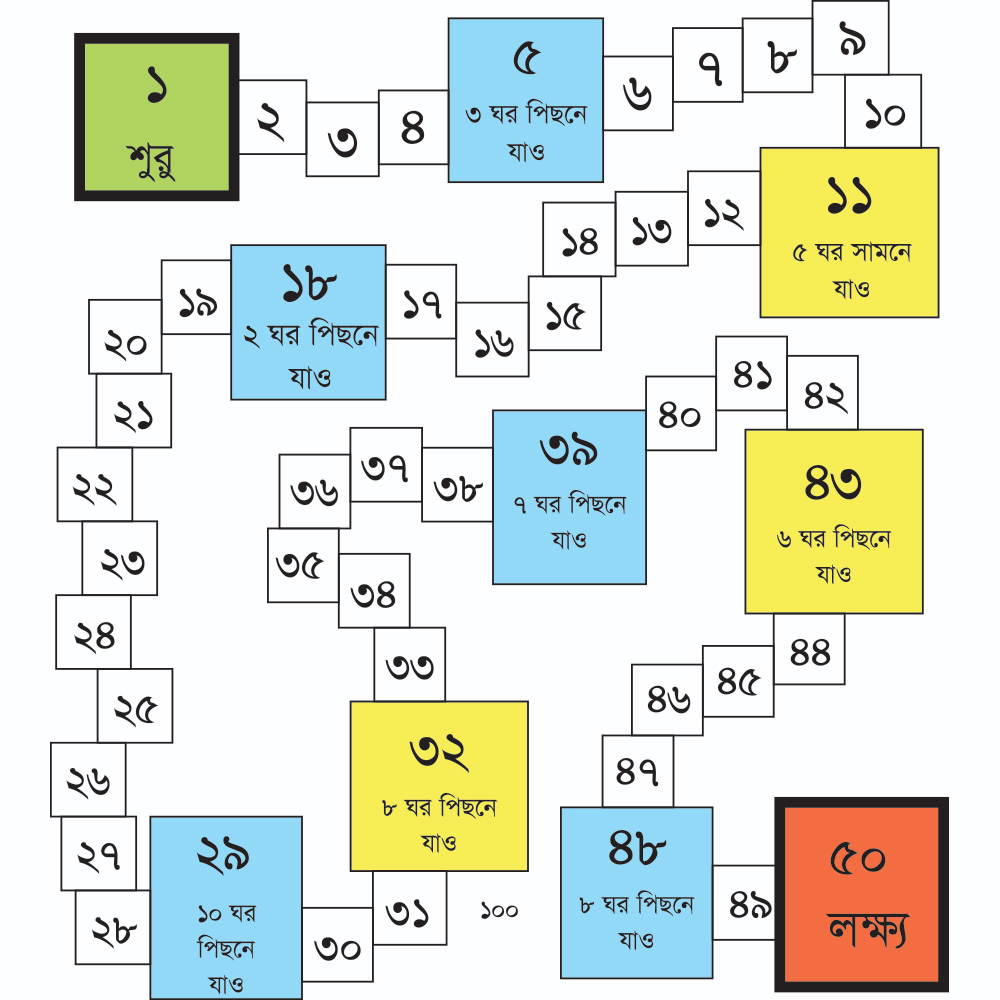 ২ থেকে ৪ জন পর্যন্ত একসাথে খেলতে পারে । খেলতে লুডুর গুটি ও কৌটা লাগবে । পাথর, কাগজ, কাঁচি খেলার মাধ্যমে কে প্রথম ও কে দ্বিতীয় তা নির্ধারণ করা যায় । লুডুর চালে যার যতো সংখ্যা উঠবে ততো ঘর করে সামনে যাবে, চিত্রের মতো নির্দেশনা অনুযায়ী খেলা চলবে । (যেমন- ৫ এর ঘরে আসলে ৩ ঘর পিছনে যেতে হবে) । এভাবে যে প্রথম লক্ষ্যে পৌঁছাবে সে বিজয়ী হবে ।