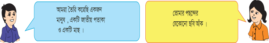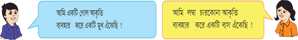 গোল , তিনকোনা ও চারকোনা আকৃতি ব্যবহার করে ছবি আঁকি ।