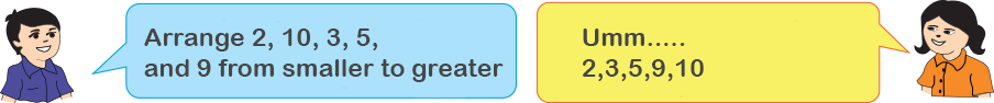 Write 5 numbers out of order from 0 to 10. Ask your friend to arrange in order from smaller to greater or greater to smaller.