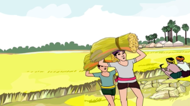 খ) হেমন্ত ঋতুতে মাঠে মাঠে ধান