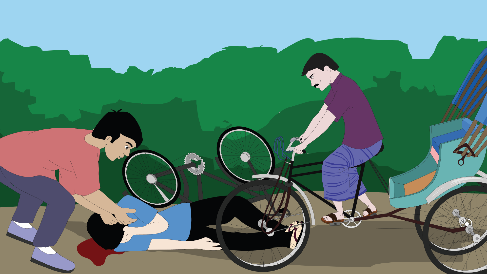 রবি একদিন রাস্তা দিয়ে হেঁটে যাচ্ছিল। সে দেখল রাস্তায় একটি ছেলে সাইকেল থেকে পড়ে গিয়ে অনেক ব্যাথা পেয়েছে এবং সে উঠতে পারছে না। রবি তাড়াতাড়ি একটা রিকশা ডাকল। রবি ও রিকশাচালক দুইজন মিলে ছেলেটিকে রিকশায় তুলল। এবং ছেলেটিকে নিয়ে রবি কাছের একটি হাসপাতালে গেল।
