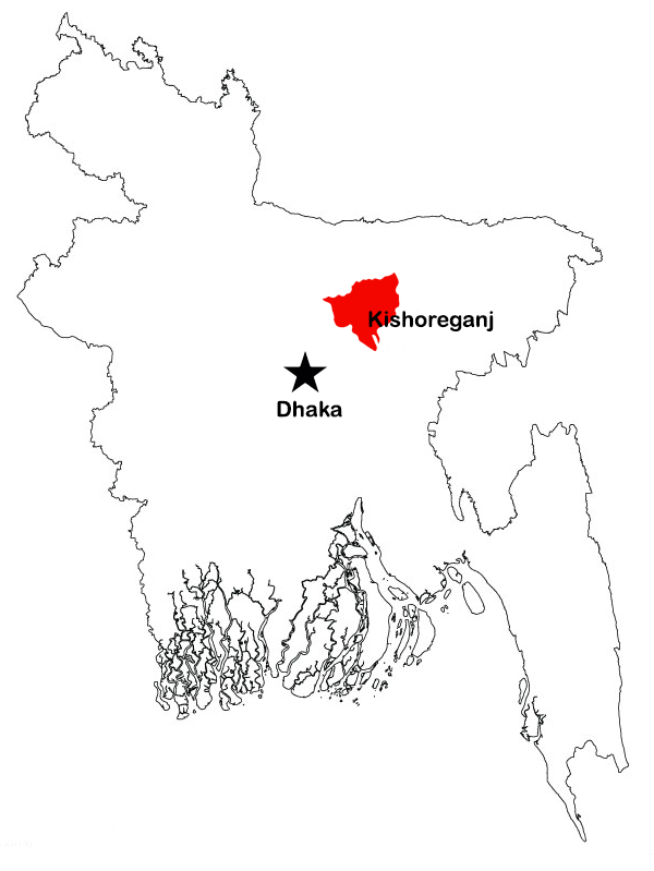 Kishoreganj is a small town, but there are many important places in and around it. The largest Eid fairgrounds, called Solakia Eid Ground and the well-known Government Gurudayal College are in the town. People from many districts come to this place Shah Muhammad Mosque to celebrate Eid. The Pagla Mosque is also in my home district. Outside the town, you can visit the fort of Isah Khan at Jangal Bari. You can also see the Shah Muhammad Mosque at Egaroshindhur. Near the Fuleshwari River, you can see the Shiva Temple of Chandrabati.
