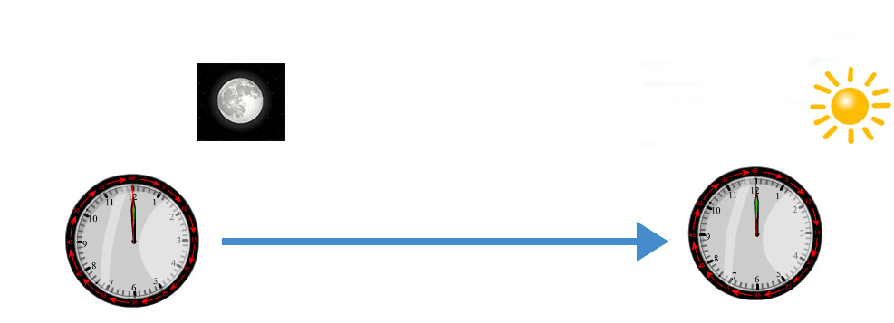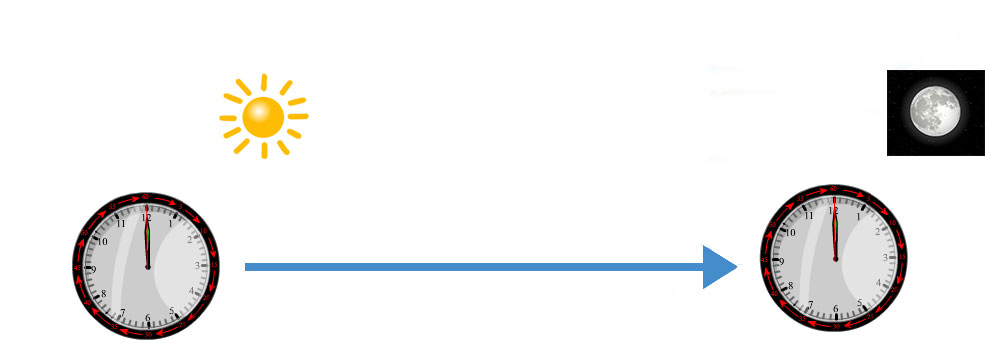 we are at school at 9 a.m. but we are at home at 9 p.m. times.