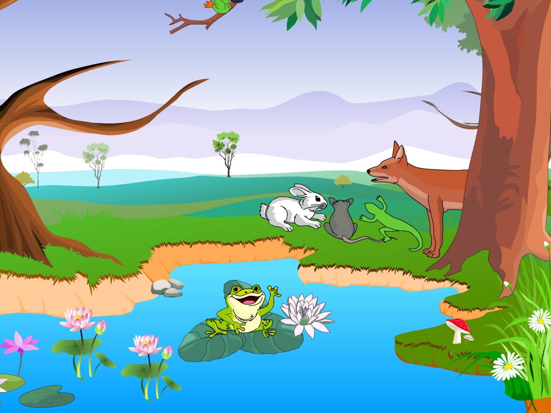 And to this day, the birds sing with Bluster's beautiful voice, and Bluster, and all the other frogs, can only say croak... croak.