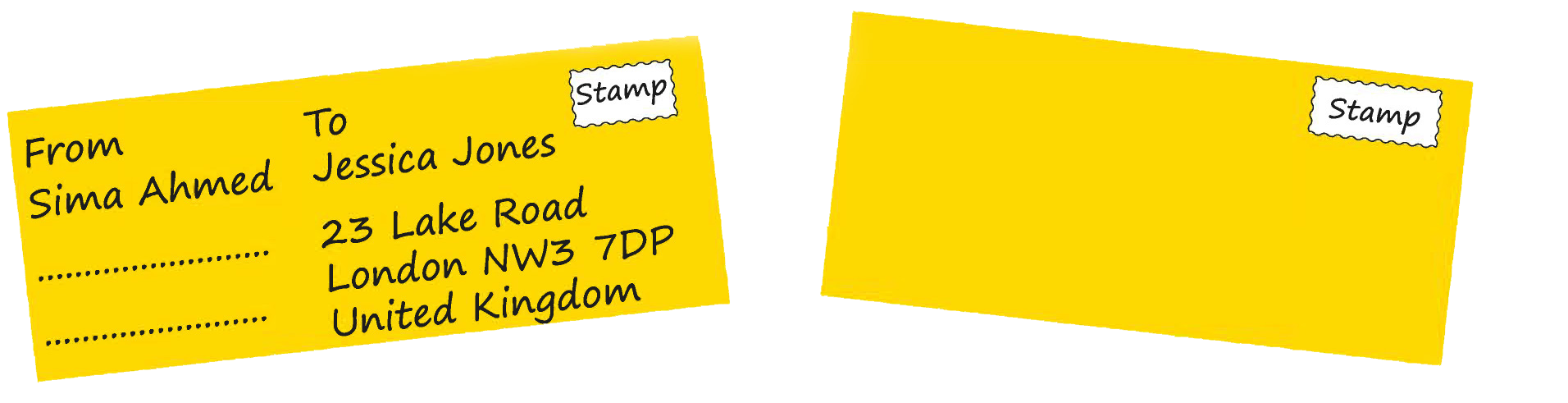 K. Look at the envelope for Sima's letter to Jessica. Write the address on Jessica's envelope.