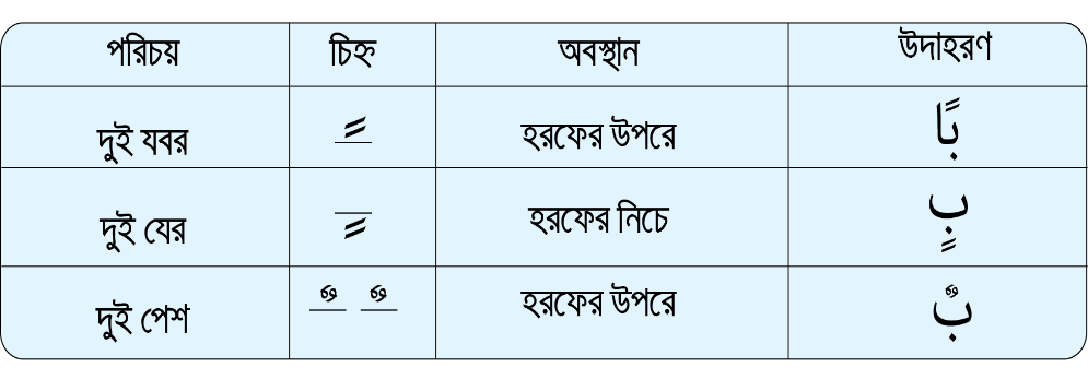 তানবীনের অবস্থান উদাহরণসহ নিচের ছক থেকে জেনে নেই –