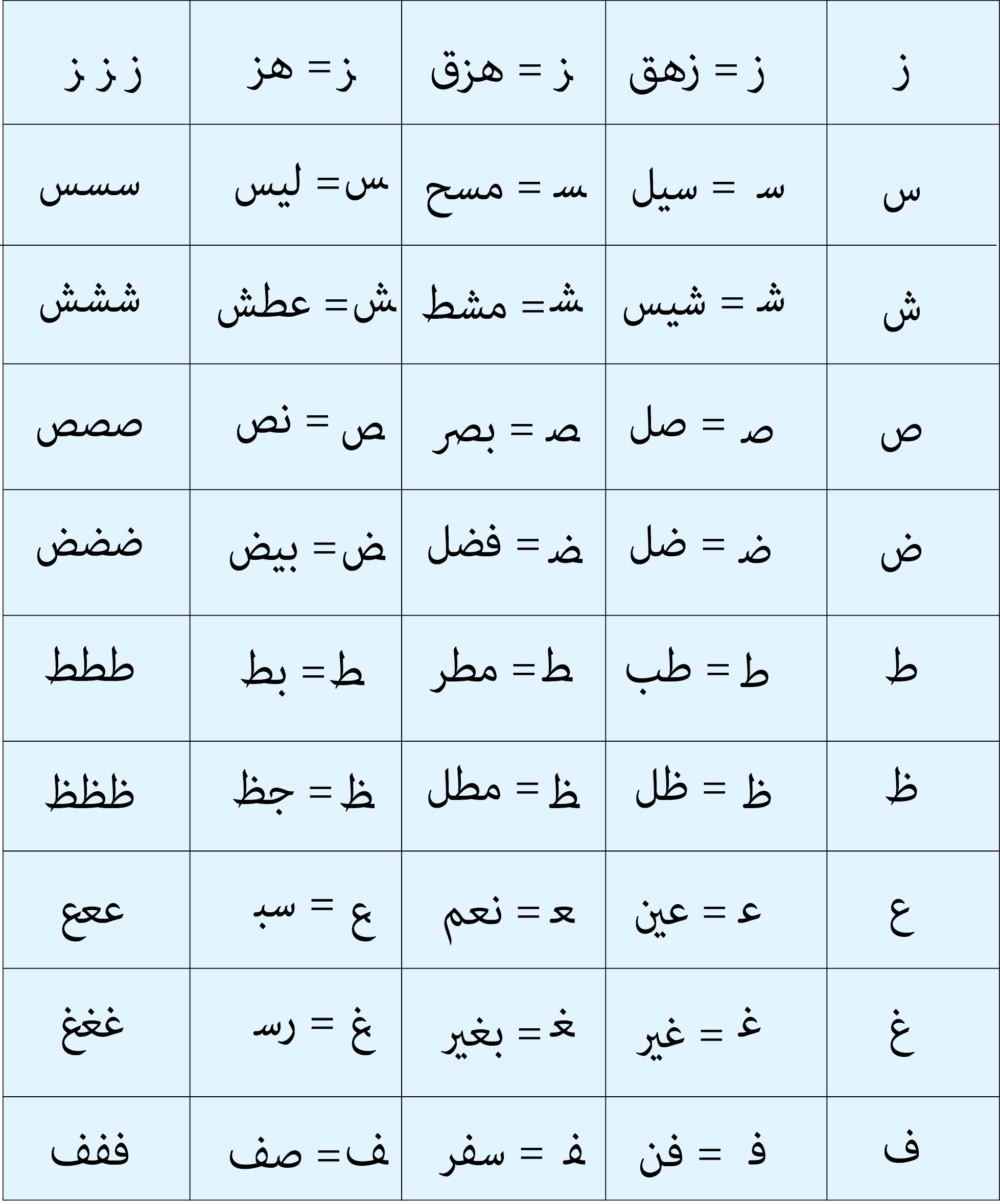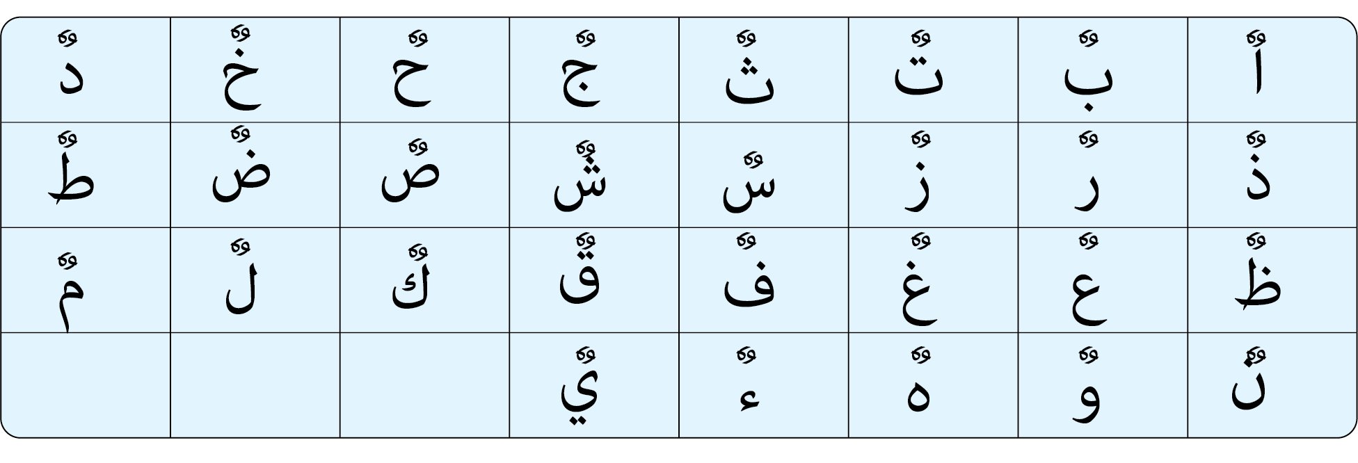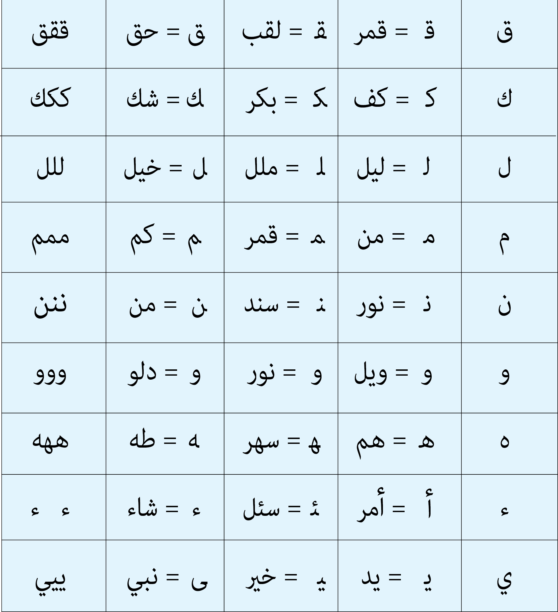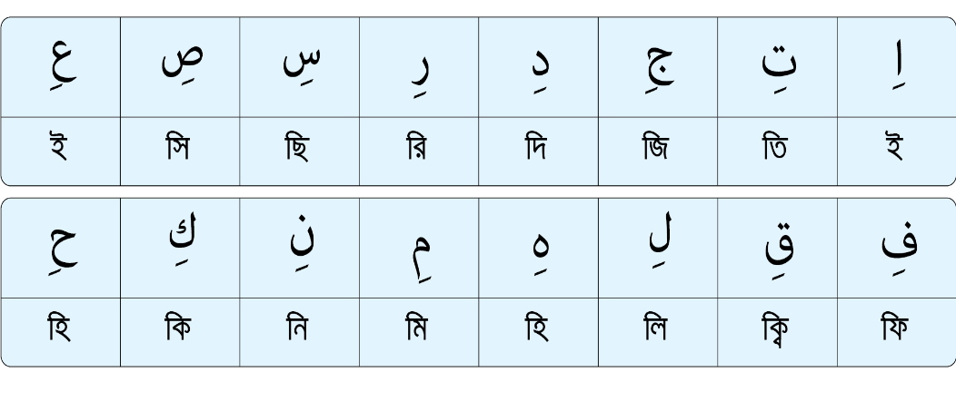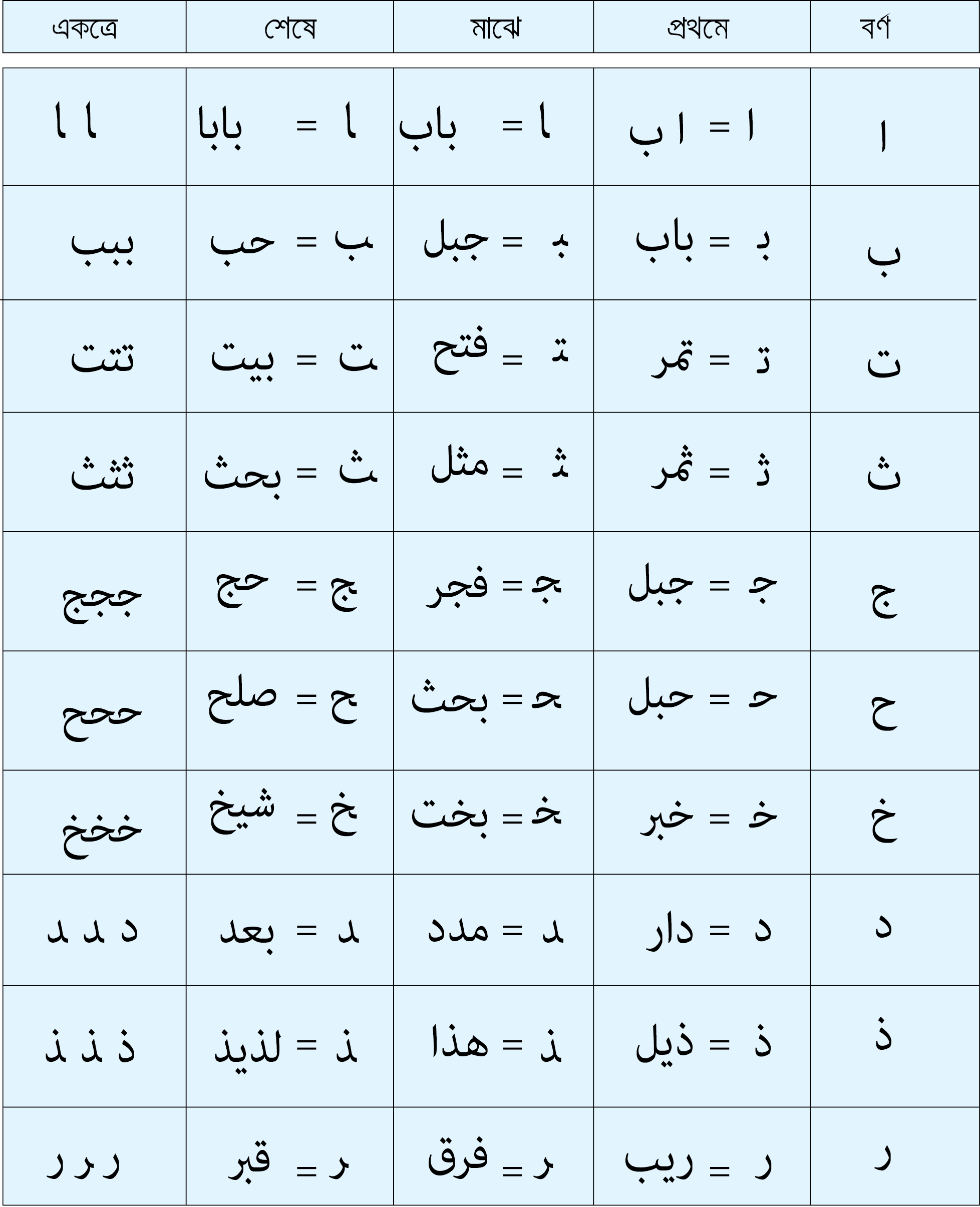 শব্দের শুরুতে, মাঝে, ও শেষে আরবি হরফগুলোর বিভিন্ন রূপঃ