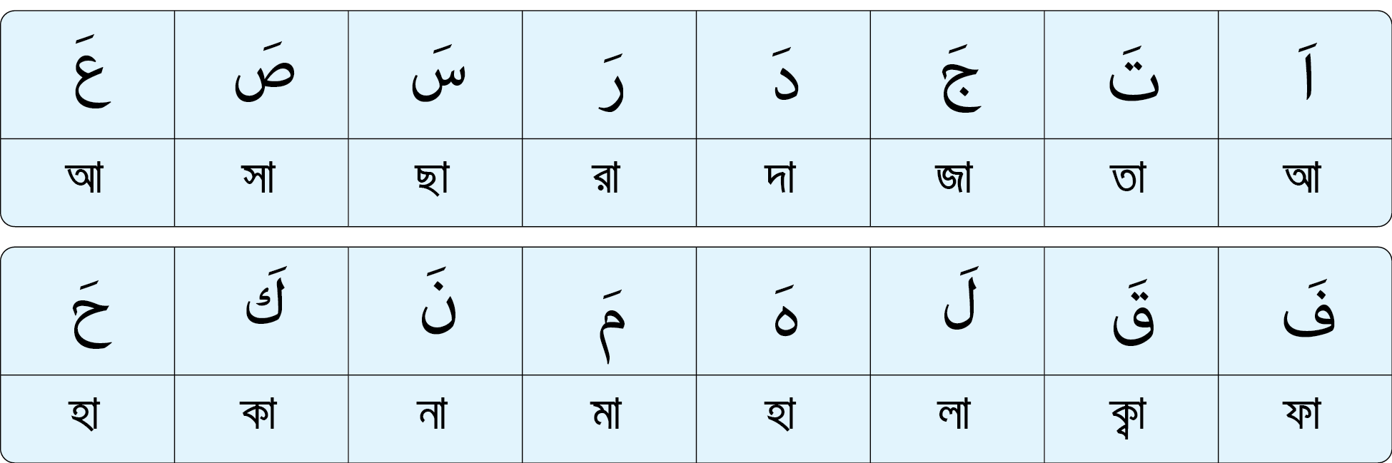 ১। হরফের উপর যবর থাকলে উচ্চারণে আ-কার হবে।