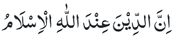 Meaning: Surely Islam is the only religion acceptable to Allah.